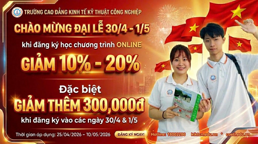 Nhân dịp kỷ niệm Ngày Giải phóng miền Nam 30/4 và Quốc tế Lao động 1/5, chương trình khuyến mãi đặc biệt dành cho các khóa học online chính thức được triển khai. Đây là cơ hội lý tưởng để học viên trên toàn quốc đăng ký các chương trình đào tạo chất lượng cao với mức ưu đãi hấp dẫn, giúp tiết kiệm chi phí mà vẫn đảm bảo giá trị học tập và phát triển nghề nghiệp.